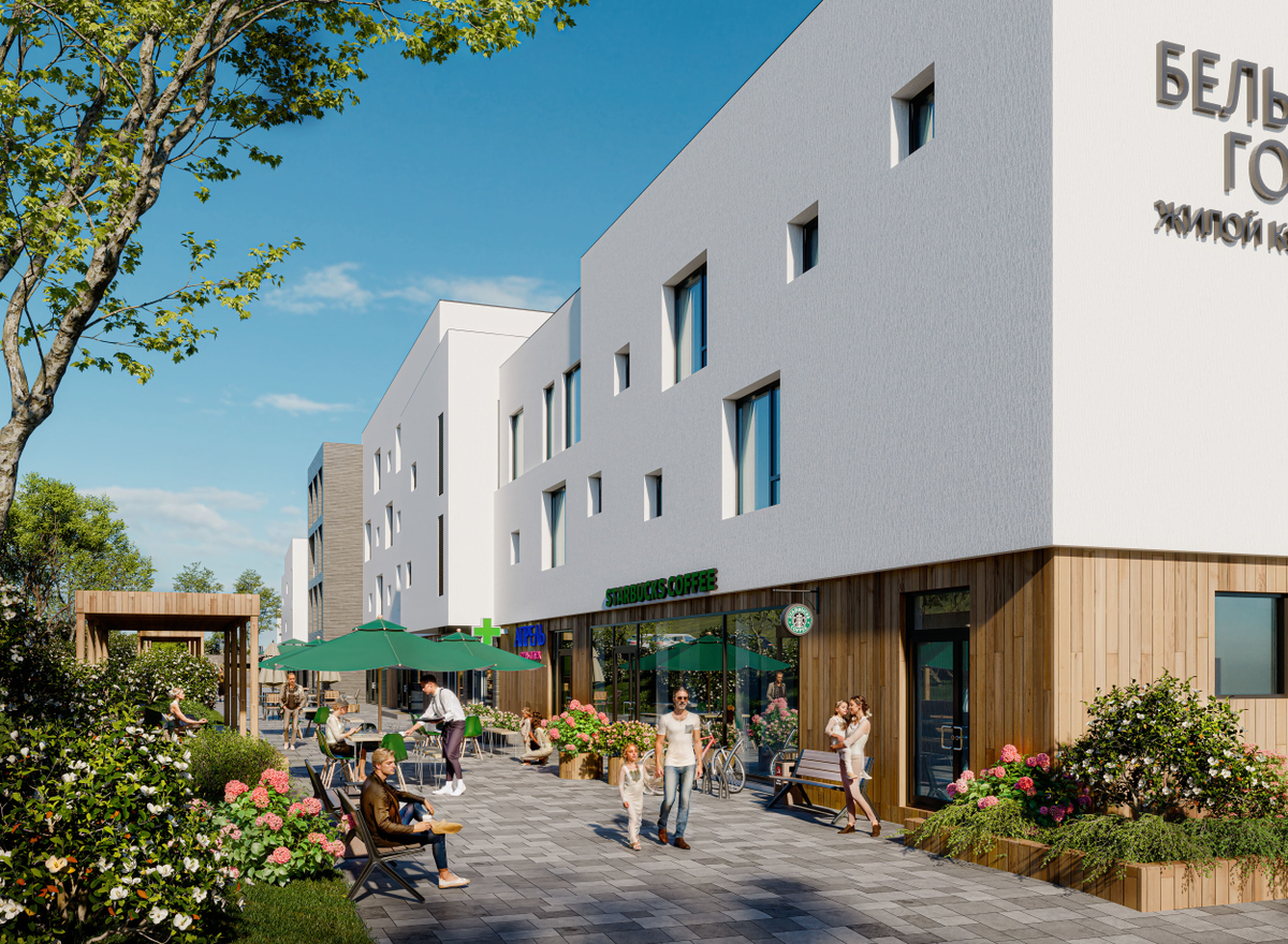 • Магазины, кофейни и весь необходимый стрит-ритейл на территории