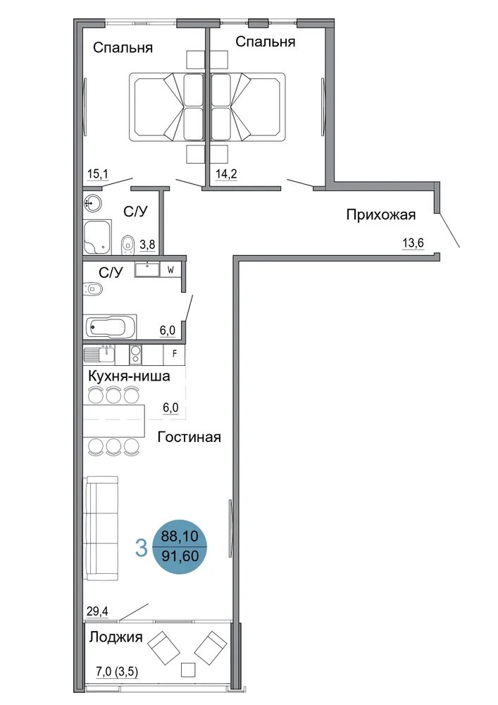 91.6 м2